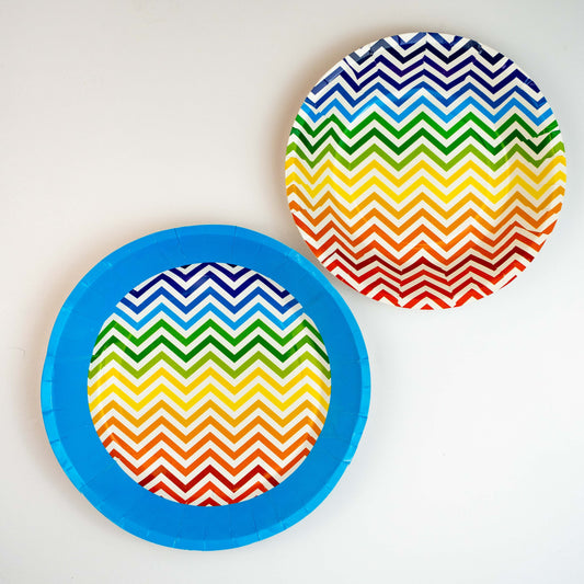 RAINBOW CHEVRON PARTY PLATES - LARGE